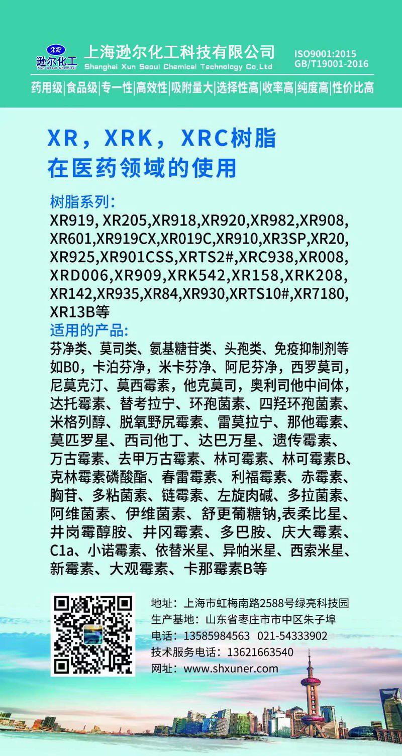 上海遜爾化工科技有限公司是上海市新型的高分子材料研發、生產、應用相結合的高科技公司。公司具有完善的自主知識產權創新體系,與華東理工大學,江南大學,浙江工業大學等科研應用平臺合作從事離子交換與吸附樹脂研制、生產和生物醫藥合成與分離工藝,三廢處理工藝開發設計工作。